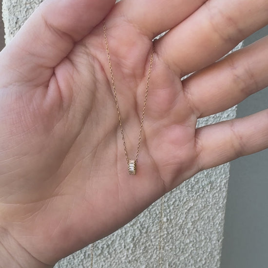 The detail that elevates everything. A miniature eternity ring for your chain—baguette diamonds set in a delicate circle that separates charms or stands alone as the perfect accent.