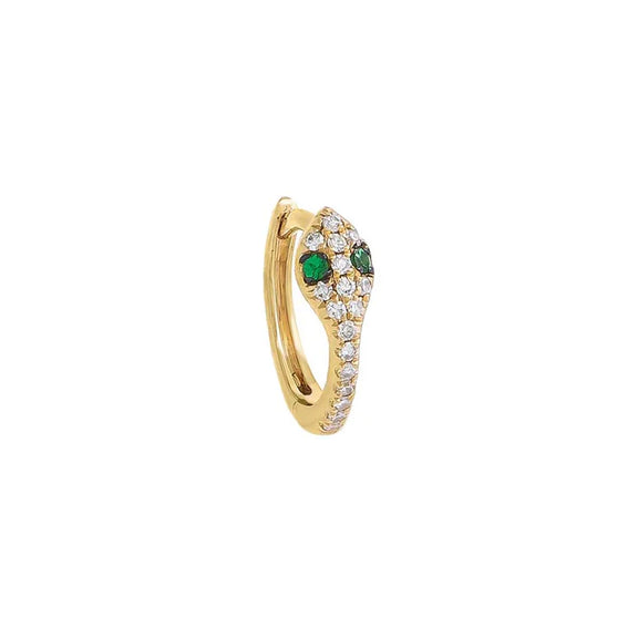 How to wear: This huggie sits close to your earlobe with the snake wrapping around. Perfect for asymmetric styling, stacking with other huggies, or making a statement on its own.