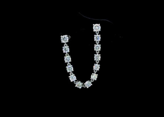 How to wear: Place the first stud in your first piercing, the second in your second or third hole. The diamond chain creates a beautiful cascade effect between the two, following the curve of your ear.