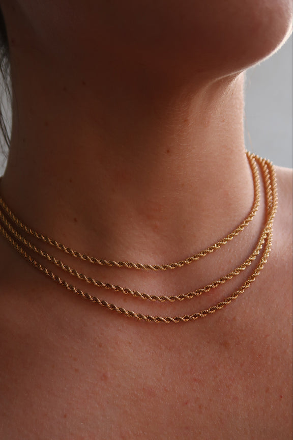 Why hollow works: All the visual impact of a solid rope chain at a fraction of the weight. Perfect for everyday wear, layering with pendants, or wearing solo. The texture catches light beautifully without weighing you down.